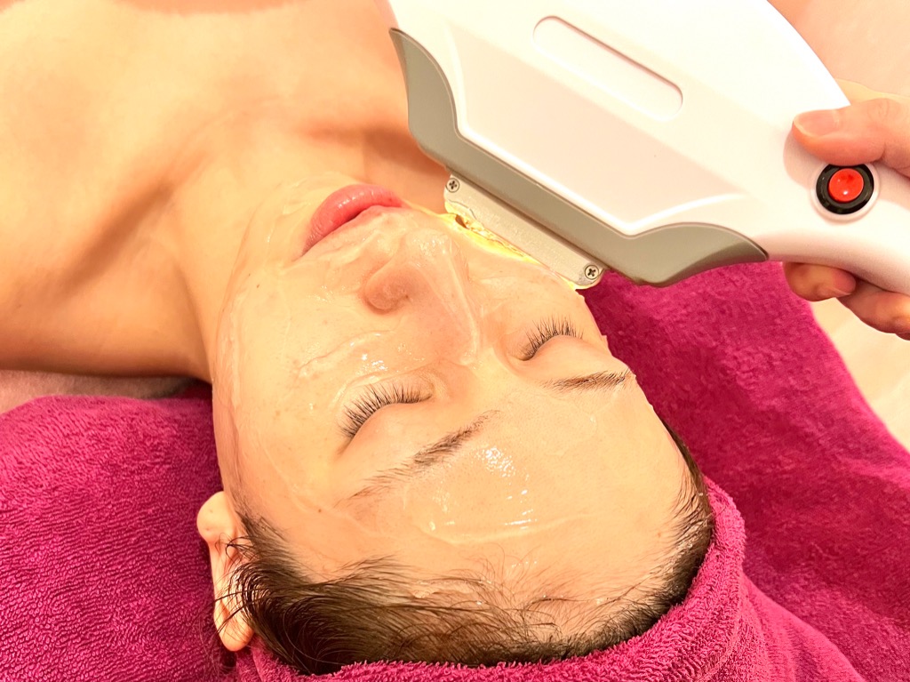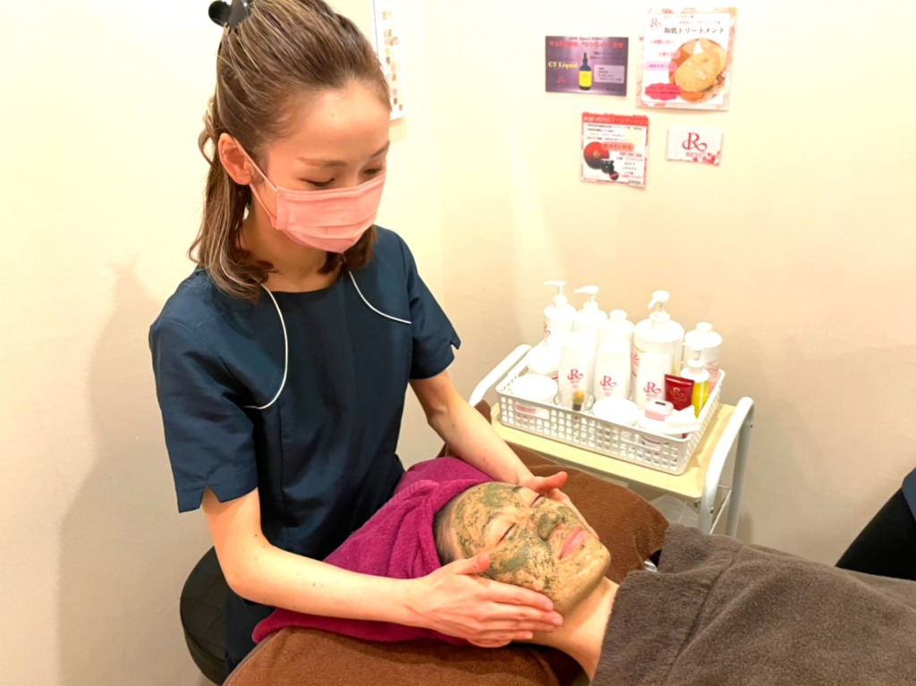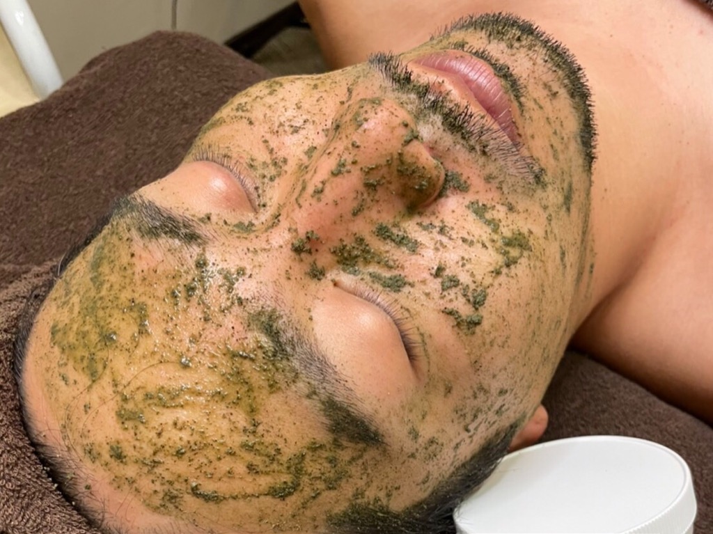 クレンジング→洗顔→角質除去→ハーブ導入→パック→お仕上げ肩・首・ヘッドマッサージ付き♪※お悩みに応じてオプション1個から追加可能です。