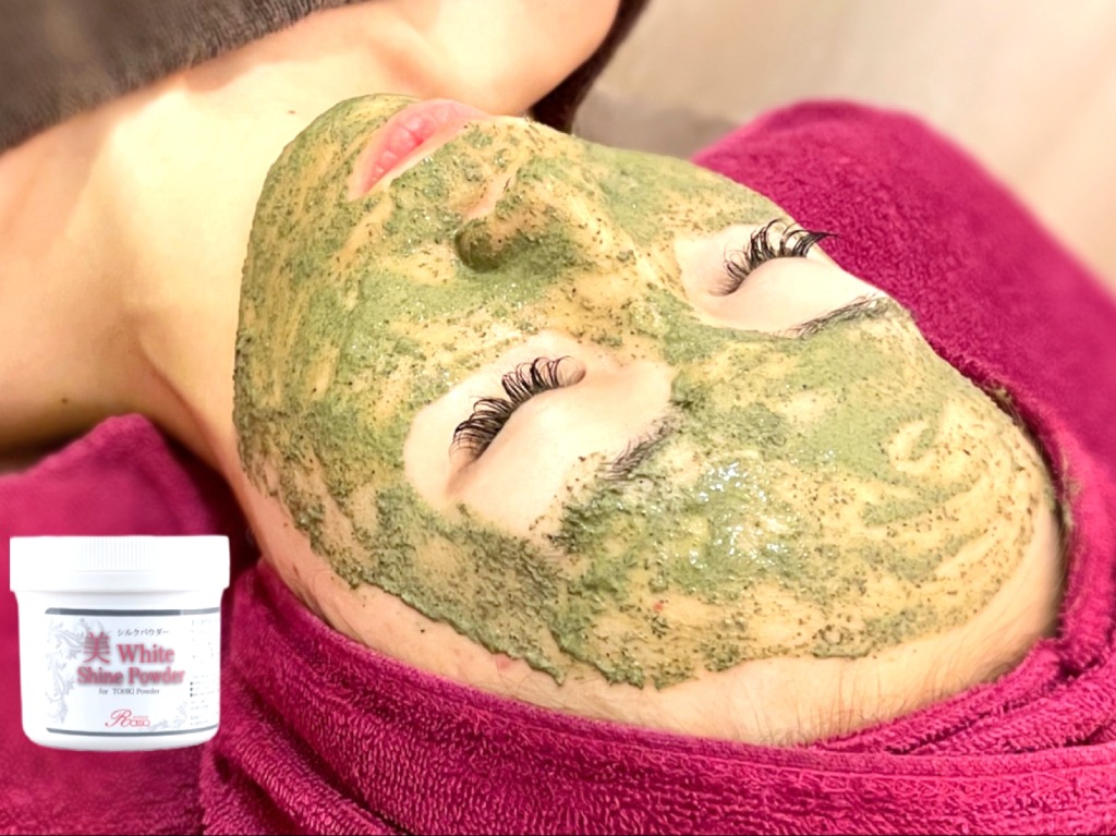 陶肌ハーブ2gに、シルクパウダー1g+パワーローズブースター0.8mlをブレンドして徹底的にシワ・たるみを改善し張りのあるお肌へ導きます。